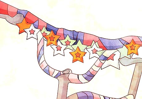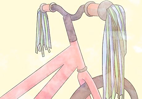 Add streamers to your handlebars. Finally, add a delightfully childlike flair to your bike by adding streamers to your handle grips. Streamers can be created with old plastic bags, strips of fabric, or even old pom poms. Commercial streamers come with small clips that are inserted into the ends of your bar grips. If you make your own streamers, you can fashion your own clips to attach them using supplies from a craft or hobby store.