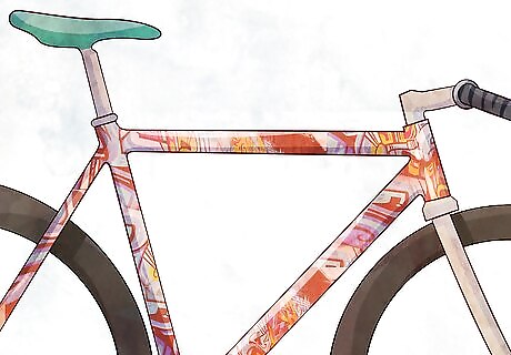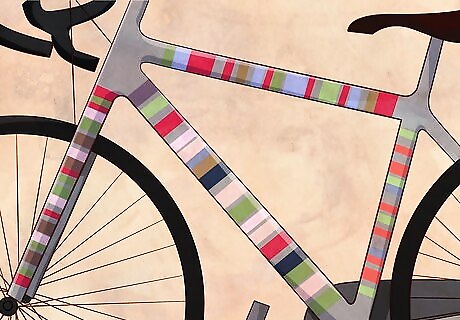 Layer stickers for an all-over change. Using washi tape or other stickers, layer to completely cover up your bike frame instead of painting it another color. To help your washi tape last longer, apply a coat of polyurethane or other sealant. This will ward against weather damage and peeling. If washi tape is too expensive to cover your bike completely, you can also use patterned duct tape. There are countless patterns and colors to choose from.
