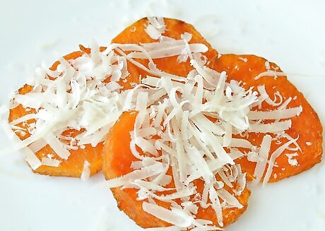 Make healthy chips. Cut your squash into small, thin rounds and soak them in a bowl of ice water for 10-15 minutes. This will help get your chips crisp. After they've soaked, pat the slices dry with a paper towel. You can then drop them into the deep fryer in small batches for two to three minutes until they reach a chip-like texture. Once you've removed them from the fryer, drain them on paper towels and season them with Parmesan cheese and salt.