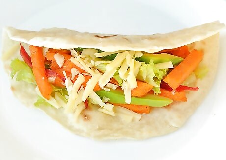 Substitute meat in tacos. Rather than the usual taco accompaniments of ground meat, chicken, or fish, try adding your fried butternut squash to healthy, vegetarian tacos. You can keep the usual ingredients like cheese, shredded lettuce, and salsa, or you can try adding sliced red pepper, avocado, and sprouts. You can also bread the squash with a mix of Panko crumbs, garlic powder, chili powder, and cumin before frying.