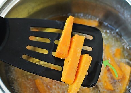 Choose an oil. When choosing an oil to deep fry your butternut squash in, it’s important to pick one that has a higher smoke point than the cooking temperature. For example, if you have a food that needs to be cooked at 350 degrees F (176 C), then use an oil that doesn’t smoke until 375-400 degrees F (190-204 C). Oils like sunflower, soybean, and peanut are the best for frying at high temperatures. You can also use vegetable shortening or lard. However, avoid olive oil and butter as they have low smoking points and burn easily.
