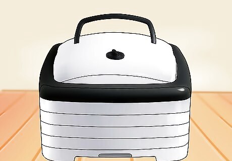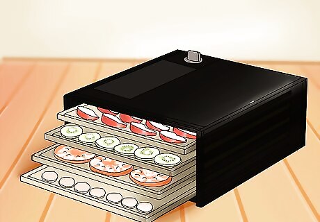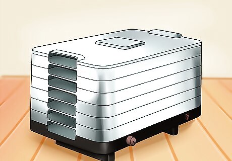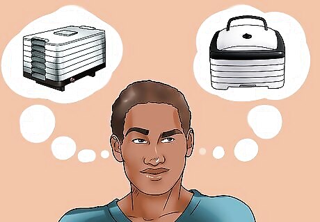 Use a horizontal dehydrator if you are drying large quantities or many different foods. This model of dehydrator tends to be large, allowing multiple foods to be dried at once. It also provides the most even heat distribution. Horizontal dehydrators have the fan or the principal drying element in the back of the unit. Since the air doesn't pass directly from one tray to the next, this minimizes the imparting of flavors between foods. This means your beef jerky won't taste like your apple chips, and vice versa. The main disadvantage is that horizontal dehydrators are more expensive. Excalibur Dehydrators are well built and a very popular brand among drying enthusiasts.