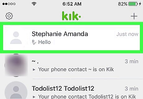 Open the Kik app. It's a white app with the word "Kik" in green letters. If you're not logged in automatically, enter your log in information.