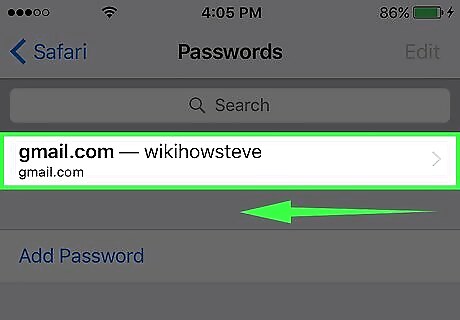 Swipe left on a saved login.