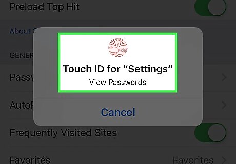Scan your fingerprint with Touch ID if prompted. If you don't have a passcode set up on your iPhone, you will automatically be brought to the saved passwords screen.