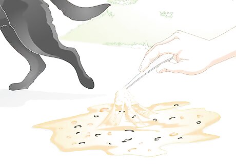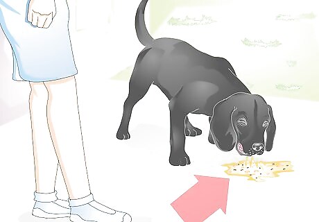 Examine the vomit. Yellow and foamy vomit will not have any food particles in it because the stomach is empty. Vomit with partially digested food will also have bile, but the bile will not be as easy to see. If your dog initially vomits partially digested food and then continues vomiting, the stomach will eventually be empty and you will see only the yellow and foamy fluid.