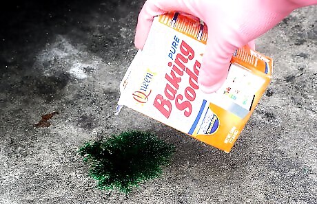 Place absorbent material over the spill. An absorbent material, such as kitty litter, sand, or baking soda, can pick up antifreeze. Treat the spill immediately by layering material over it.