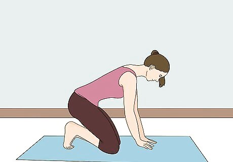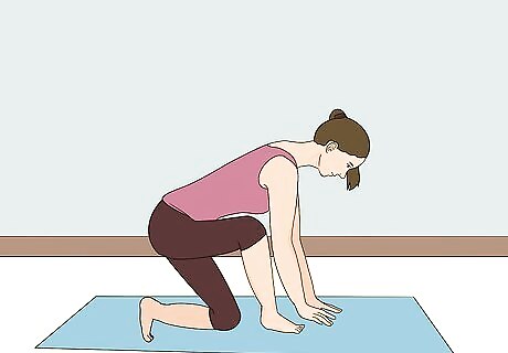 Lean forward on your palms to support your body weight. Keep your knees and toes on the mat and your back straight, but lean forward and lift your backside off of your heels. You should no longer feel any body weight on your toes. Your wrists, elbows, and shoulders should all be in alignment and perpendicular to the floor. Bend your elbows only slightly—don't "lock" them in a full extension.