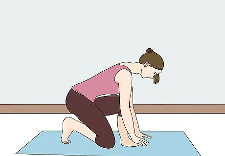 Bring your left knee forward so your left thigh is parallel to the floor. Bend your left knee at a 90-degree angle, and place your left foot flat on the mat and directly beneath your left knee. Make sure your thigh is parallel to the floor to maintain proper form. Keep your right knee and toes resting on the mat. Your left foot should be between your palms on the mat. You can start with your right leg instead if you wish—you’ll be alternating legs back and forth anyway!