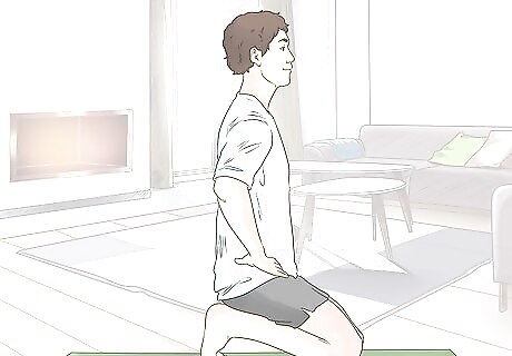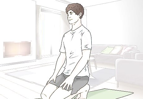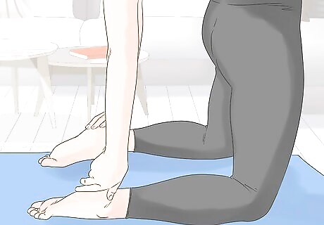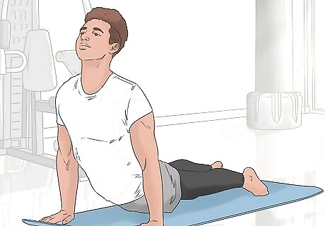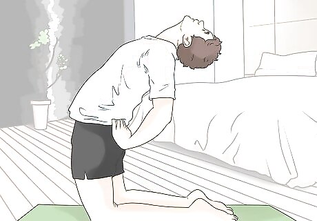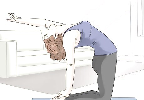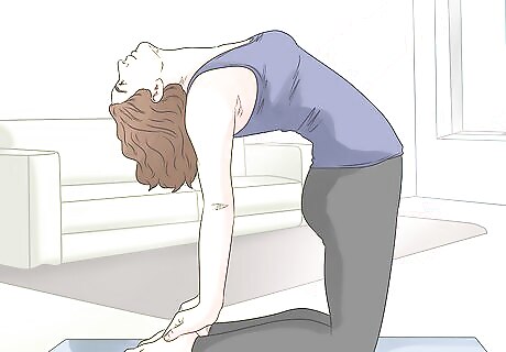 Warm up. Before attempting camel pose, be sure to stretch your back with some gentler poses. If you are attending a class, your instructor will not have you do camel pose until you are sufficiently warmed up. If you are practicing on your own, try some poses like cat cow pose and cobra pose to warm up your spine.