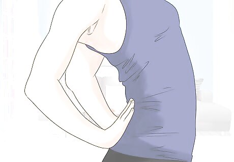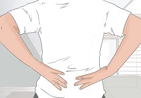 Keep your hands on your hips or sacrum. If you have never done this pose before, start with a less intense modification. Begin by gently tilting your pelvis forward. You can then begin arching your upper back and drawing your shoulder blades towards each other to open your chest. Leave your hands on your hips or move them to your sacrum (just above your tailbone) for some extra support. If you feel comfortable here, feel free to explore some of the other options. It is also perfectly fine to stay in this modified pose. If you feel any compression in your back, reduce the intensity of the back bend.