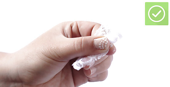Wrap a piece of lace around your finger. Choose lace with holes that aren't too big or small. With the hand of the nail you'll be painting, hold the lace pinched behind that finger, so that the front of the nail is covered in lace. Hold the lace tightly and securely, so that the fabric pattern blocks polish from seeping underneath. A piece of lace that will fit a dozen – or slightly more – holes from the pattern on each nail should work well. You can buy lace in the ribbon section at local craft stores and some discount department stores.