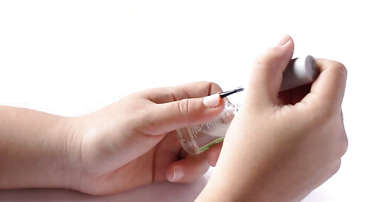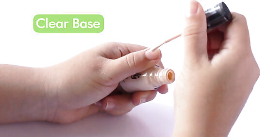 Apply your base coat of choice. You can use a clear base coat, or any color you like. Just make sure there is a least some contrast between the base coat color and the shade you'll use to paint the lace pattern. Allow the polish to fully dry. For example, you may want to use a clear base coat if you're doing a white lace pattern over a French manicure. To use lace as a template, you'll need to hold it tightly around your nail, so it's important that your base coat is fully dry first. Otherwise, the lace can smudge or dent your base coat.