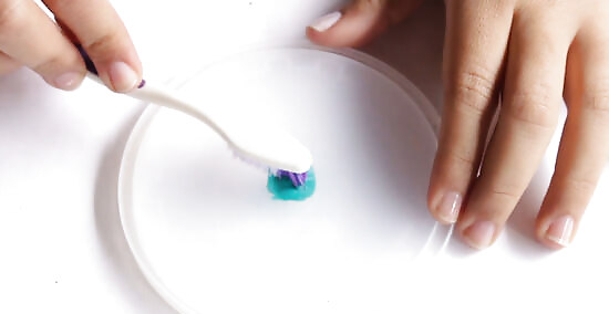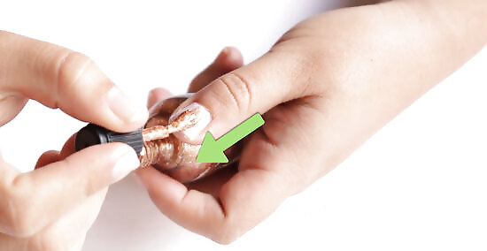 Press your toothbrush on your nails. On each nail, press the toothbrush down on the nail in a couple of different spots. This will create tiny speckles at different points of the nail. Hold the toothbrush steady while pressing it down on your nails to avoid smearing your speckles.