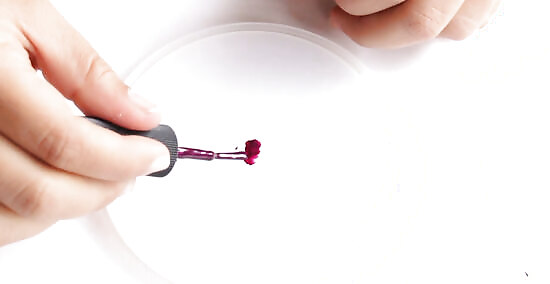 Drip your chosen nail polish color onto a paper plate. Take a nail polish that's a different color from your base coat. Drip some onto a paper plate. You only need a small amount for this method.