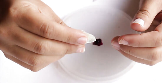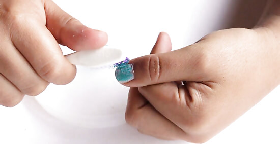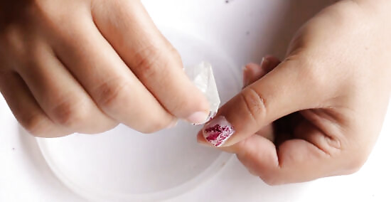 Test out your plastic on your paper plate. Before using your plastic ball to apply paint to your nails, do a few test runs on your paper plate. Dab your plastic ball in your nail polish and then dab it onto an empty portion of the plate. If the speckles are too big or blend together too much, adjust your plastic ball. You can unfold it and refold it or pull some of the plastic out of place slightly.