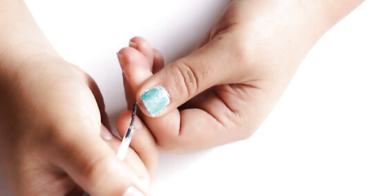 Add a layer of pastel polish. As this is a spring look, a pastel color works best. As robin's eggs are blue, traditionally a light blue shade works best. Select your color and add one layer of pastel polish to serve as your base coat. For this look, it's important that your base color dry completely before decorating your nails. To reduce drying time, instead of applying one thick coat to each nail, apply two thin coats. Wait two minutes before applying each coat to your nails. Thinner coats tend to dry faster. You do not need to stick to one color. For a more spontaneous spring look, try painting your nails in various shades of pastel.