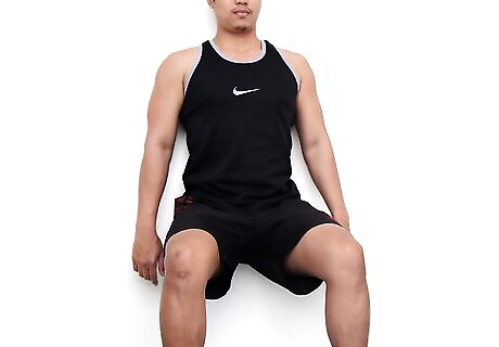 Hold a wall sit. This exercise is performed by leaning on a wall in a sitting down position. You should have two right angles––at your hips and at your knees. Also known as the Roman Chair, this exercise benefits your quadriceps muscles.