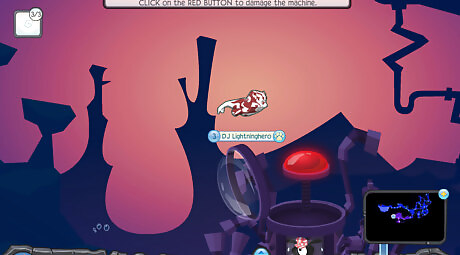 Click on the red button continuously to destroy the machine. When you click on the button, it will be as though you were attempting to destroy a phantom obstacle such as a pod or web. Continuously click on the button.