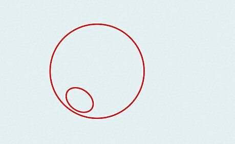 Draw a big circle. On the lower half portion of the big circle, draw a smaller circle.