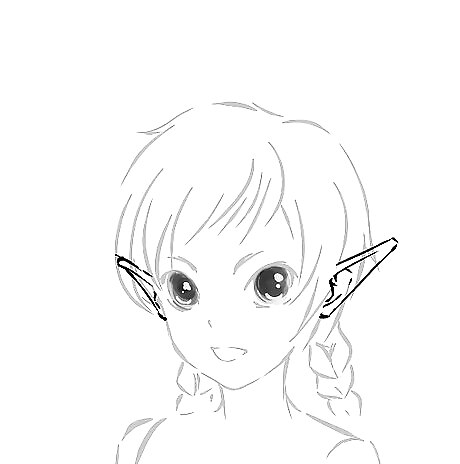 Focus on shaping the ears. Elf ears are pointed but still retain an elegance without looking odd. This may take some reshaping until you're satisfied with the end result, so use light and even pencil strokes. Follow the image for help (you can even trace over the image until you have the knack of drawing it yourself). This is a good point to draw the eyes. The image here uses anime style eyes, which give an ethereal and cute quality at the same time. You could experiment with other eye styles as well, if preferred. Detail her long hair; the character shown here has the hair in plaits but it can also be loose, drawn up into a bun or braided knots, etc. Whatever you choose, be sure to make it a feature of the female elf.