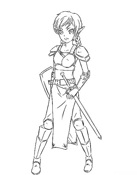 Draw the elf clothing over the body shape. Typical elf clothing fits tightly to the body and provides ease of movement for swift running, horse-riding and general movement. You may also like to define your female elf by her activities, such as being a warrior, cook, farmer, comedian, princess, etc. 04 Choose a class for the elf Step 04.jpgA warrior elf outfit - see the additions of a belt and armor.