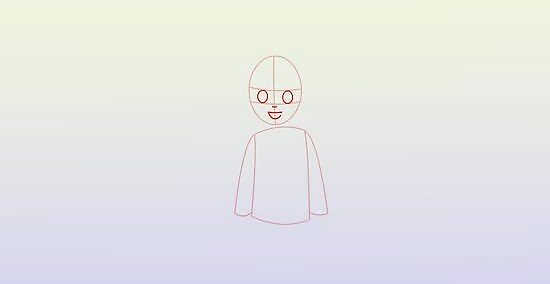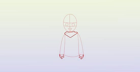 Add collar-guide of the jacket at the base of the oval head and a hands on either side.