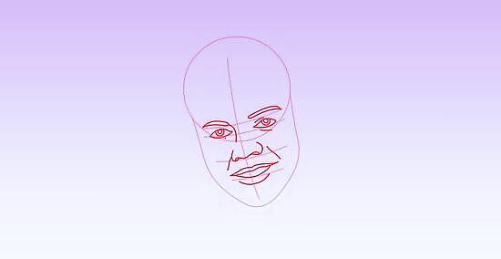 Create further horizontal guides for the eyes, nose and mouth.