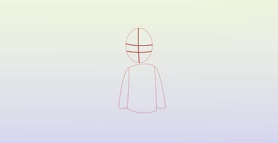 Make a small oval in the upper centre of the page for the head of the guy.