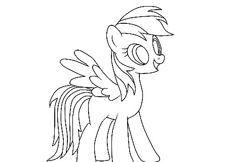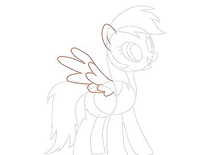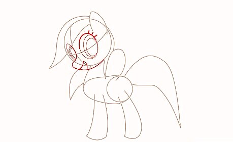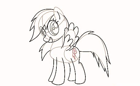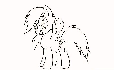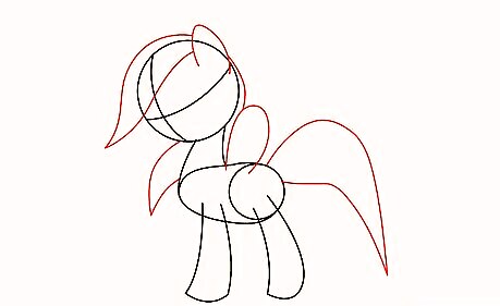 Draw details for the pony's wings and visible ear – use rounded curves.