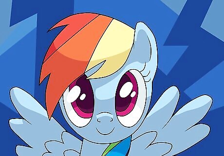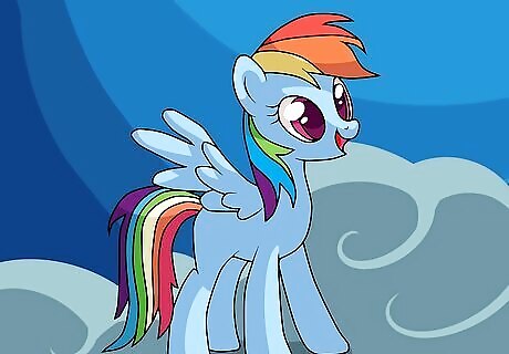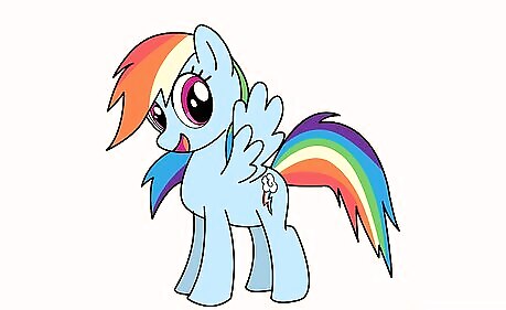 Don't forget to add her cutie mark, a cloud and a rainbow colored lightning shape on her rear part.