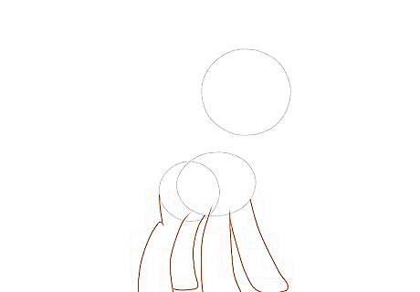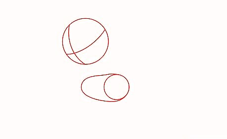 Draw two circles and an oval. The oval and circle overlap each other. The other circle is farther up and bigger. This will be the framework.