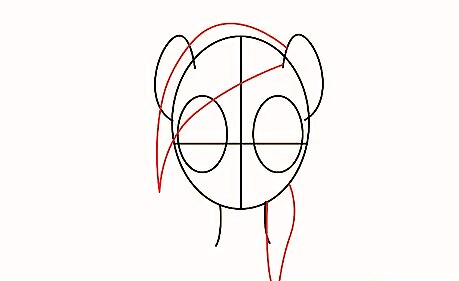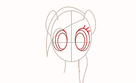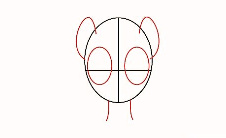 Sketch a rough outline of the eyes, ears and neck. You can use two small oblong shapes for the eyes and an egg-like shape for the ears.