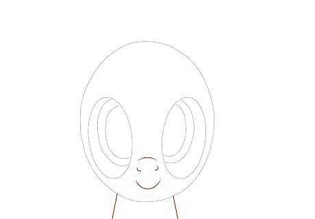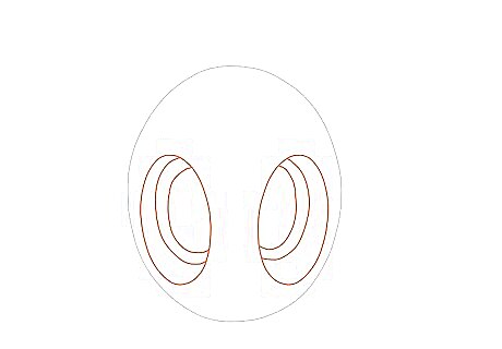Draw two ovals inside the big oblong for the eyes. Draw inner ovals in each.