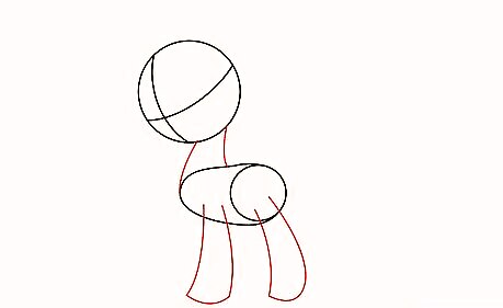 Connect the head and body. For the neck, use two simple slanted lines. Add the outline of two legs.