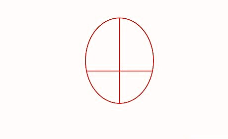 Draw the head's outline. Draw an oblong with a vertical line cutting it into two equal parts. Draw also a horizontal line, slightly closer to the bottom of the oblong.