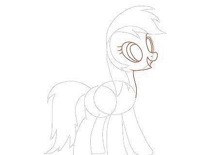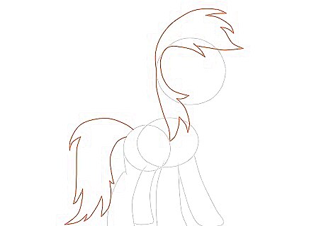 Draw the Rainbow Dash's four legs from the overlapping circle and oval, using curve lines.