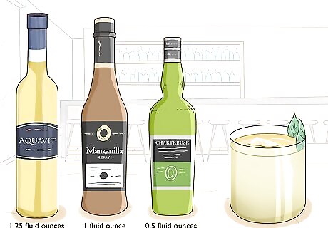 Enjoy an herbal cocktail made with sherry, aquavit, and Chartreuse. Combine 1.25 fluid ounces (3.7 cL) of aged aquavit, 1 fluid ounce (3.0 cL) of manzanilla sherry and 0.5 fluid ounces (1.5 cL) of green Chartreuse into a shaker filled with ice. Mix these ingredients together completely before straining them over a coupe glass. Add an herbal flavor to the drink by garnishing it with a sprig of dill. Keep the glass refrigerated ahead of time before serving the cocktail.