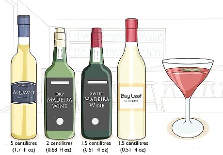 Mix aged aquavit with wine to make a Manhattan cocktail. Add 5 centilitres (1.7 fl oz) of double madeira linie aquavit with 2 centilitres (0.68 fl oz) of dry madeira wine, 1.5 centilitres (0.51 fl oz) of sweet madeira wine, and 1.5 centilitres (0.51 fl oz) of bay leaf liqueur. Combine these ingredients before straining them over 1 rounded cocktail glass. Try using a bay leaf to garnish this beverage.