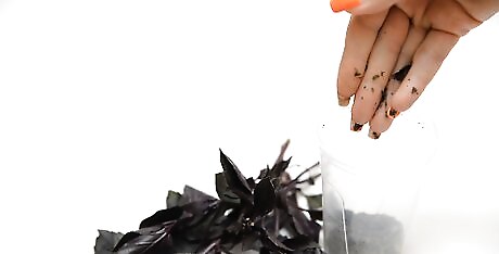 Place the crumbled leaves in airtight containers. After crumbling the leaves, place them in an airtight container, such as a glass jar with a tightly sealed lid. To make sure your basil stays potent and flavorful for as long as possible, keep the jar in a dark, cool space (such as a cupboard or pantry) where it will be protected from heat and sunlight.Tip: To get the most out of your dried basil, gently rub it in the palm of your hand before adding it to a dish to help release its aroma and flavor. Add the basil at the beginning or middle of the cooking process rather than the end for the best flavor.