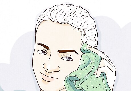 Wipe excess dye off of your neck and forehead with a paper towel or wet cloth. Do not disturb the dye in your hair. If you want, you can put a shower cap on your hair to keep the dye from going everywhere. Once you have put a shower cap on, you can wrap your head in a towel so that the cap retains the heat of your head. This will speed up the dyeing process.