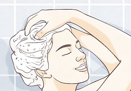 Wash your hair 24 to 48 hours before dyeing. Doing this allows the natural oils in your hair to develop which in turn allows the dye to bind to your hair more easily. The dye will blend more naturally with your hair, and that tends to make it last longer. If possible, avoid conditioner when you wash your hair the day before dyeing it. Conditioner eliminates your natural oils, which you need for the dye to set in more easily. If your hair is extremely dry, condition it every night for at least five minutes in a hot shower for a week before you plan to dye your hair. Then, do not condition your hair the night before dyeing. This will keep your hair from drying out after you dye it.