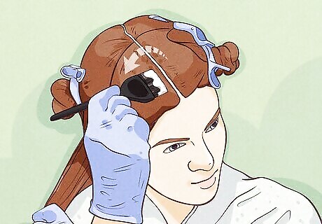 Mix your dye with a developer. This only applies to some dyes - the box your dye came in will have instructions regarding developer. The developer is generally included in the kit. If it is not, you can purchase it at your local drugstore. If you need to purchase your own developer, choose a 20% developer. Each increment of 10 represents one level change of color. For instance, a 30% developer will move your hair up three levels. If you're a sandy blonde, then you can get to a bright, sunny golden blonde with 30%, because that's a level 7 to a level 10 change.