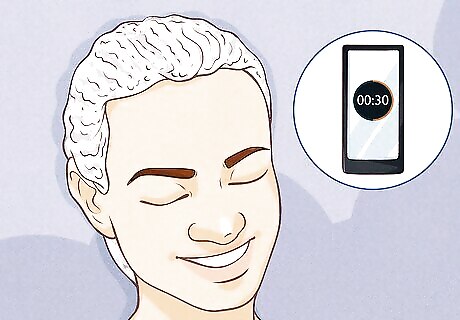 Set a timer for how long you need to leave the dye in your hair. Follow the instructions on the box. Do not rinse the dye out before the minimum time or leave the dye in past the maximum time. Make sure to follow the directions exactly. If you have a lot of grey hair, it’s best to leave the dye in for the maximum amount of time. It may help to sit under a heated dryer, as well. Never leave hair dye in overnight. Leaving it in overnight will dry out your hair and it may cause severe skin irritation as well.