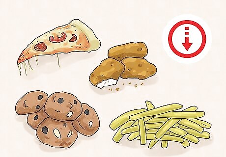 Limit the amount of convenience foods you eat. Frozen pizza, macaroni and cheese, and chicken nuggets might be quick dinner options, but convenience foods like these are often high in cholesterol, salt, unhealthy fats, and sugar. Whenever possible opt for dinner choices based on whole foods that you prepare yourself. Make your own pizza at home rather than popping a frozen one in the oven. Use a whole grain crust and top it with fresh veggies if you have them handy. Try making your own healthier versions of convenience foods you love, like homemade baked chicken nuggets.