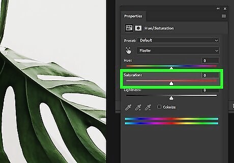 Change the saturation. Saturation is how bold the colors in a photo are, and a saturation adjuster is another common feature in photo editing programs. Sometimes, the photo can be improved by lower the saturation (moving towards black and white) and sometimes it can be improved by increasing saturation. Experiment to see how it affects your image. To adjust the saturation in Photoshop, click the icon that resembles three gradient bars (Hue & Saturation) or the icon with a triangle (Vibrancy) above the Layers panel. This adds a new adjustment layer to the image. Click the new adjustment layer and use the saturation slider bar above the Layers panel to adjust the saturation. You can also adjust the lightness, hue, or vibrancy slider bars. To adjust the saturation in GIMP, select Saturation from the Colors menu at the top. Use the Saturation slider bar to adjust the saturation of the image. Then click Ok.