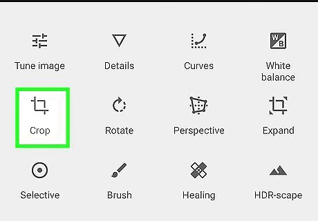 Crop the photo. Cropping a photo is a good way to add more focus on the subject in the image by cutting out some of the background in the image. The crop tool usually has an icon that resembles two right angles forming a square. To crop an image select the crop tool and then drag the corners of the image inward so that the light part of the image is centered around the subject in the image. Then tap the icon that confirms the changes you made. In many apps, the crop tool displays two horizontal and two vertical lines that divide the image into thirds. You can use these lines as a composition guide. Align the subject or other elements of a photo with the lines or where they intersect. In photography, this is called The Rule of Thirds.