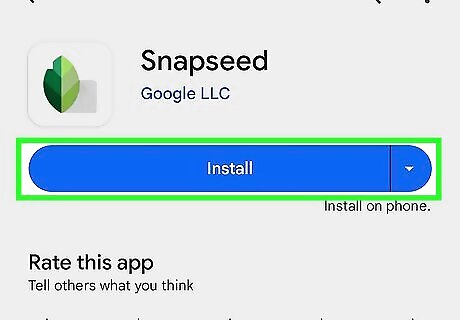 Download a photo-editing application. There are plenty of free editing applications available in the Google Play Store on Android or App Store on iPhone and iPad. If you want to explore different styles, then download a few apps and play around with their effects. Examples include the following: Snapseed (Free) PicsArt (Free) VSCO (Free) Instagram (Free) Adobe Photoshop Express (Free) Canva (free)