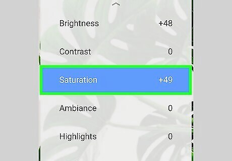 Adjust the saturation. Some apps allow you to adjust the saturation, or intensity of color, in a photo. Increasing the saturation of a photo can make the colors pop and make the photo more eye-catching. Too much saturation, though, can make the photo look harsh and almost cartoon-like.