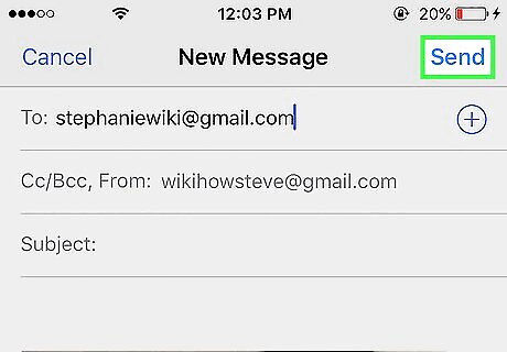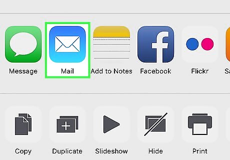 Tap Mail on the menu that appears. If the Mail option is not available, you either do not have an email address associated with your iPhone, or you selected more than five pictures.
